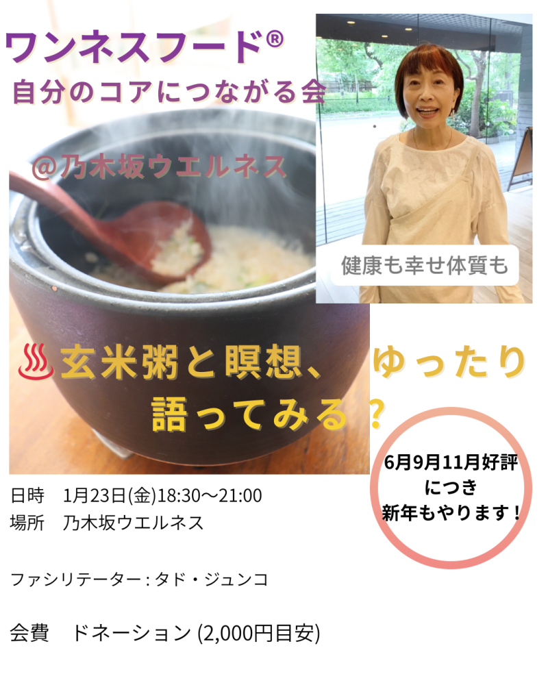 1/23(金)18:30〜♨️アツアツの玄米粥を囲んで⭐️自分のコアに繋がる会
