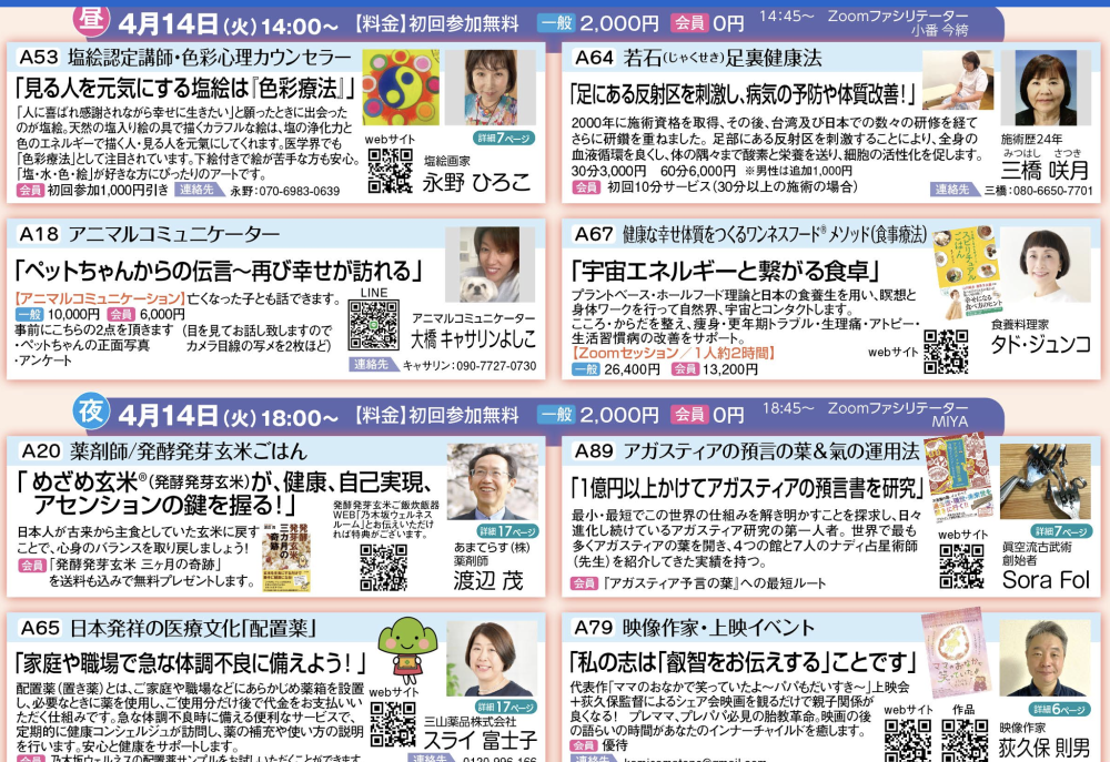 (無料 ) 利他交流会・お話会 @統合医療の聖地「乃木坂ウエルネス」 ぜひ気軽にいらしてください。 スケジュール 4月14日 (火) 13:…